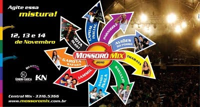 De 12 à 14 de Novembro acontece um dos maiores Eventos Indoor do Brasil: MOSSORÓ MIX 2010: com as melhores atrações: GAROTA SAFADA | PARANGOLÉ |JAMMIL |BANDA BAKULEJO | BANDA INALA DA GALERA !!! | J. QUEST | THÁBATA | AVIÕES DO FORRÓ e CAPITAL INICIAL.